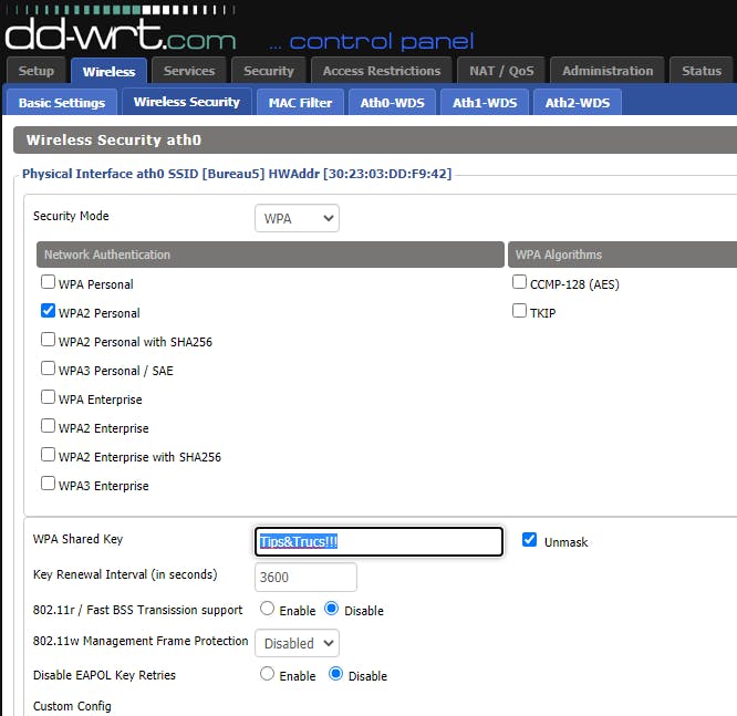 Je hebt je draadloze thuisnetwerk natuurlijk beveiligd en dat houdt ook in dat je wellicht een stevig WPA2 Personal-wachtwoord hebt opgegeven voor de netwerkauthenticatie. Je wilt nu een extra toestel tot je wifi-netwerk toelaten, maar je bent het wachtwoord vergeten. Dat hoeft geen ramp te zijn, zeker niet wanneer je nog het wachtwoord van je draadloze router kent (zie ook tip 13). Je vindt normaliter het ip-adres van de router wanneer je op de Opdrachtprompt het commando ipconfig intikt en bij Standaardgateway (Default Gateway) kijkt. Bij de meeste routers kun je het ingevulde wachtwoord weer zichtbaar maken. Mogelijk moet je hiervoor wel eerst een vinkje plaatsen bij een optie als Unmask (Password).