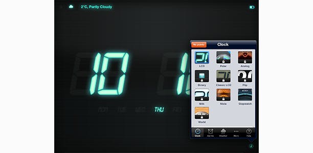 Daarnaast kun je mooie wekker-apps installeren, zoals Nightstand HD 2 (gratis), waarmee je de mooiste wekkerradio creëert die je ooit zult hebben.