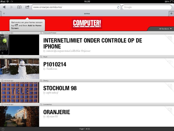 De populariteit van de iPad stijgt onverminderd. Een minpuntje is dat heel wat weblogs en sites niet helemaal tabletproof zijn. Dankzij OnSwipe kunt u uw favoriete websites en blogs samenvoegen en optimaliseren voor de iPad (2). Voorlopig ondersteunt OnSwipe enkel de tablets van Apple.