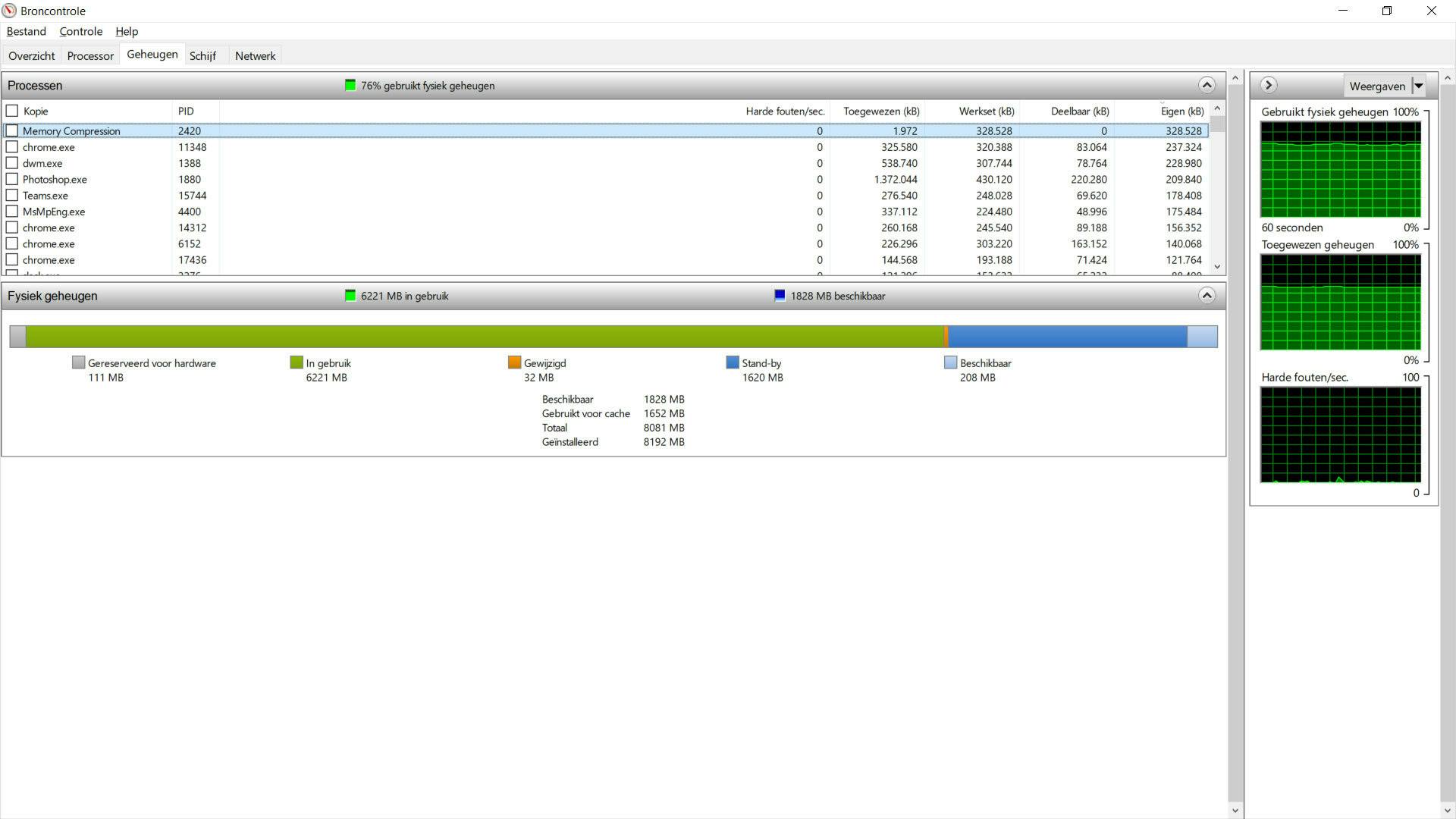 Houd er overigens rekening mee dat er ook altijd apps zijn die gewoonweg veel geheugen gebruiken. Zo staat de Chrome-browser van Google erom bekend werkgeheugen ‘op te vreten’, terwijl programma’s als Photoshop ook een groot deel van dat RAM gebruiken. Kom je dergelijke apps tegen, dan betekent dat dus niet dat er een probleem is met het werkgeheugengebruik, ook al kan de computer op dat moment wel traag aanvoelen.