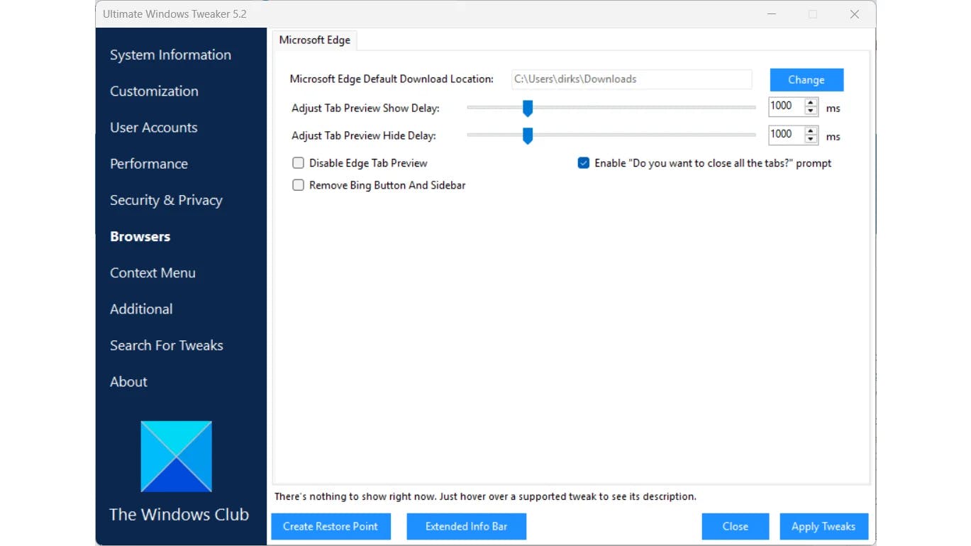 Daarnaast zijn er opties om de Bing-knop en de zijbalk uit Edge te verwijderen. Tot slot kun je instellen dat Edge eerst een waarschuwing toont wanneer je alle tabbladen tegelijk wilt sluiten.