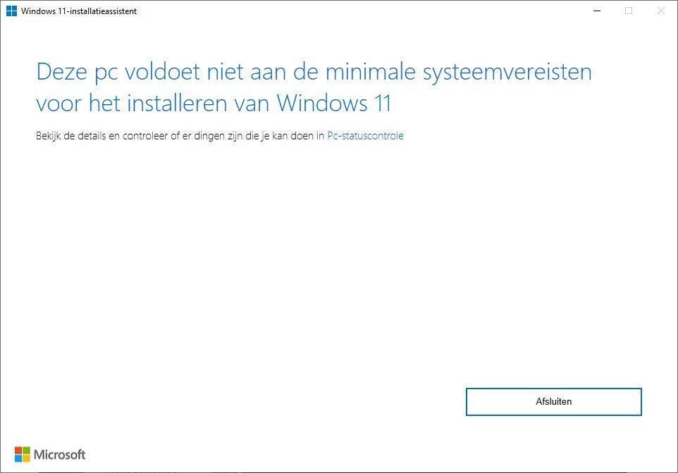 Er zijn wel wat omwegen te vinden om toch Windows 11 te kunnen draaien zonder de strenge systeemeisen, maar in hoeverre de ondersteuning dan volledig is, is altijd afwachten.