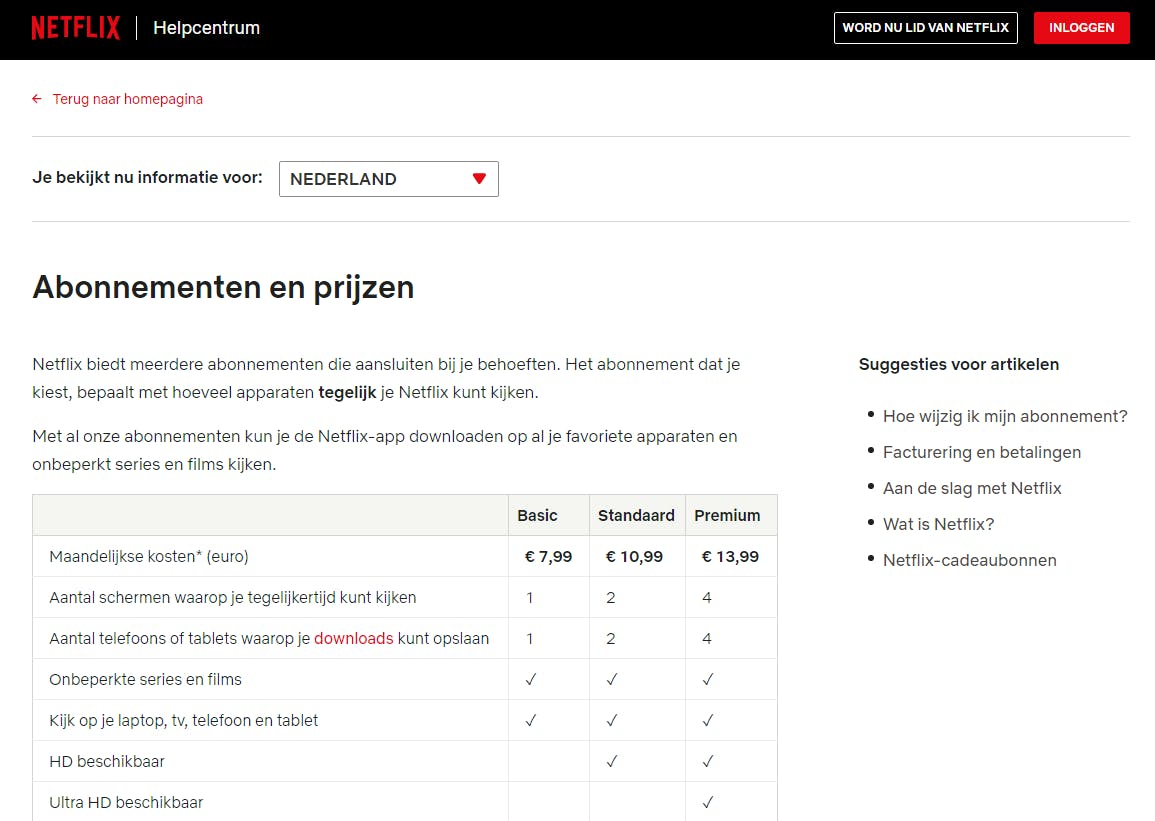 Een standaardabonnement kost bij Netflix elf euro per maand. Je kijkt hiermee naar full-hd-beelden, terwijl het mogelijk is om gelijktijdig op twee schermen te streamen. Dat voldoet voor de meeste huishoudens prima.