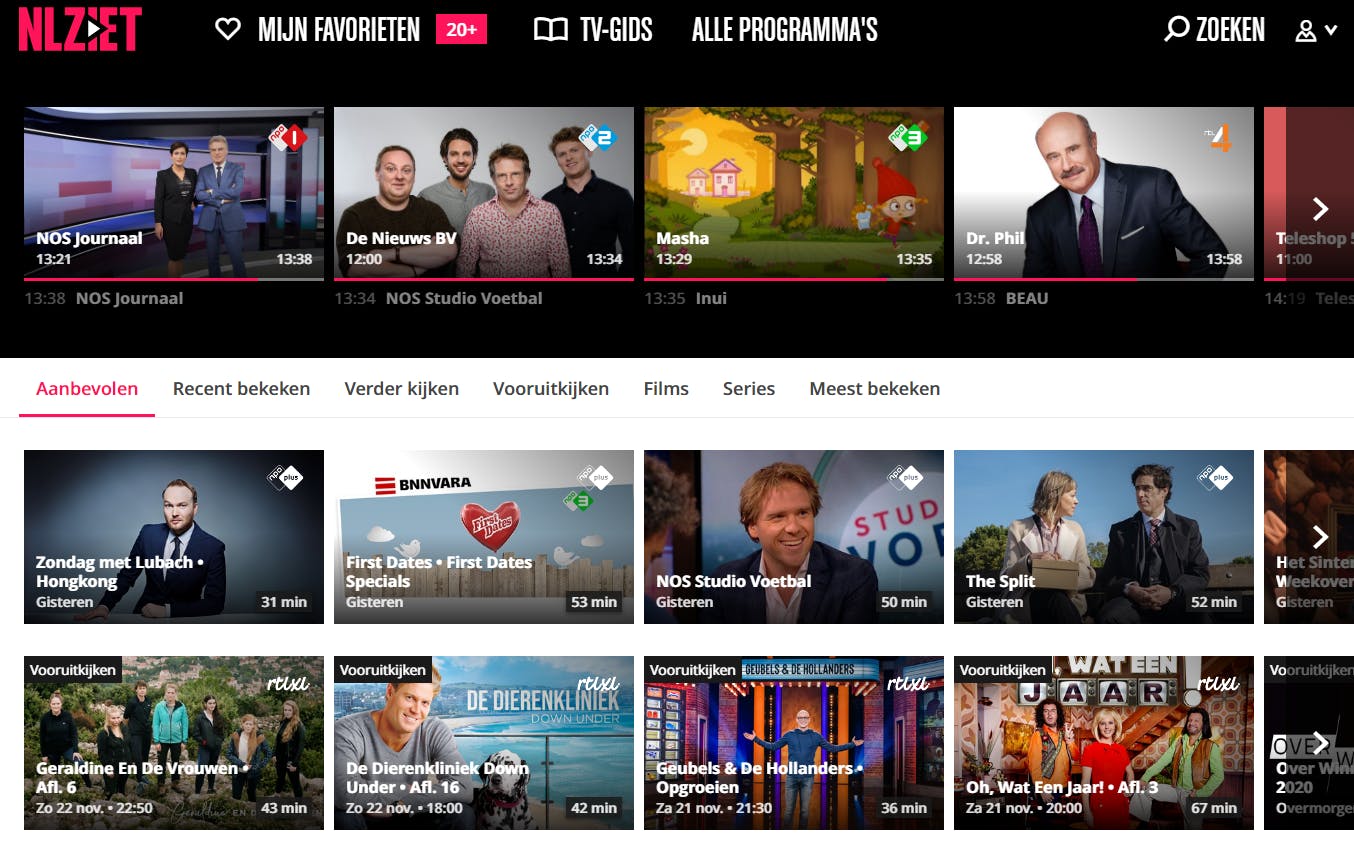 Bezit je geen recente smart-tv van Samsung, LG, Philips, Sony of Panasonic, dan kun je NLZiet ook via een Apple TV, Google Chromecast of PlayStation 4 op de beeldbuis weergeven. Gunstig is dat deze streamingdienst een hoge resolutie ondersteunt. Verder kun je de meeste tv-programma’s tot een jaar lang terugkijken. NLZiet hanteert per account een limiet van twee gelijktijdige streams.