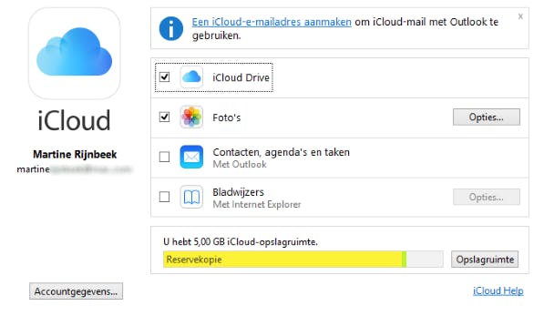 Heb je iCloud Drive eenmaal ingeschakeld, dan dien je iCloud te downloaden voor Windows (of de software bijwerken als je dit al gedaan had). Je downloadt het programma via de site van Apple. Na het installeren dien je de computer opnieuw op te starten. Klik op Start, tik iCloud en selecteer de optie iCloud die verschijnt in het startmenu of startscherm. Om iCloud Drive te kunnen gebruiken, plaats je een vinkje bij iCloud Drive en klik je op Toepassen.