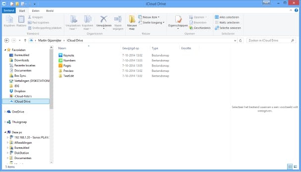 Het delen van bestanden met iCloud Drive is nu net zo eenvoudig als het delen met bijvoorbeeld Dropbox, omdat er aan de zijkant in Windows Verkenner (onder het kopje Favorieten) een optie iCloud Drive is bijgekomen, waar je bestanden en mappen gewoon naartoe kunt slepen. En ook al heeft Apple bestandsbeheer op zijn clouddienst lange tijd tegen gehouden, je kunt eindelijk in iCloud gewoon mappen aanmaken, bestanden verslepen enzovoort. Helaas worden foto's niet automatisch gesynchroniseerd met iCloud Drive, daarvoor wordt weer een kopje iCloud foto's aangemaakt onder Favorieten.