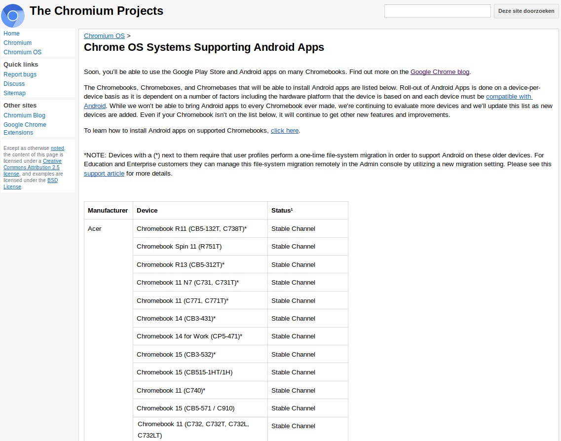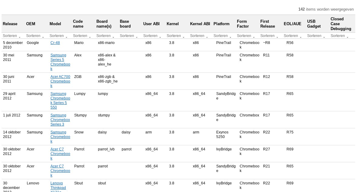 Als je je board-naam kent, kun je het in de lijst met ondersteunde board-namen van Google opzoeken. Staat de naam ertussen, dan ondersteunt je Chromebook Linux.