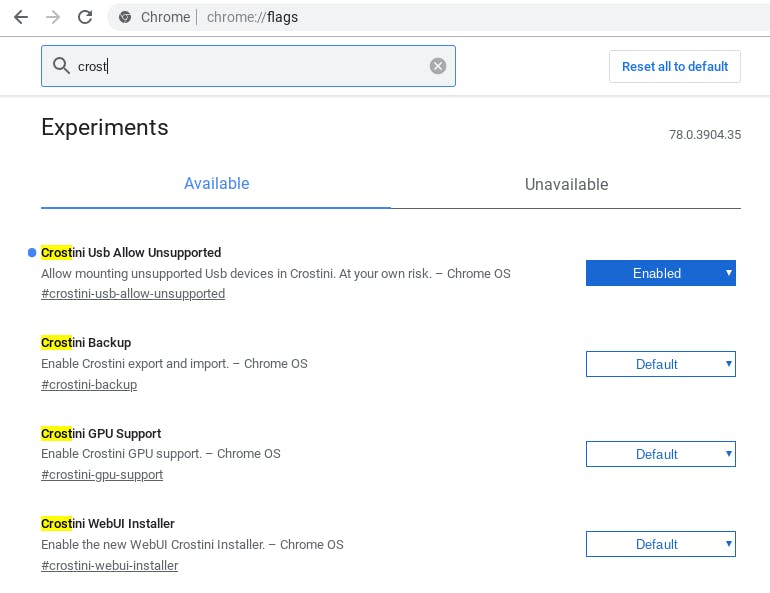 Maar ondanks die nadelen is het wel handig dat je als je het echt nodig hebt, gewoon toegang hebt tot duizenden Linux-programma’s. Houd er alleen rekening mee dat usb-ondersteuning nog experimenteel is. Voor de experimentele opties bezoek je in Chrome de pagina chrome://flags en typ je crostini in het zoekveld in.