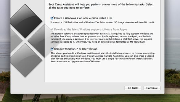 Dergelijke inconsistente zaken zijn echter te verwachten in een re-release besturingssysteem. Als je problemen hebt of de systeemvereisten verder wilt controleren bieden zowel Microsoft als Apple ondersteuningspagina's. En als je terug naar OS X wilt, hoef je alleen maar de Option toets ingedrukt te houden en OS X als je gewenste besturingssysteem te selecteren.
