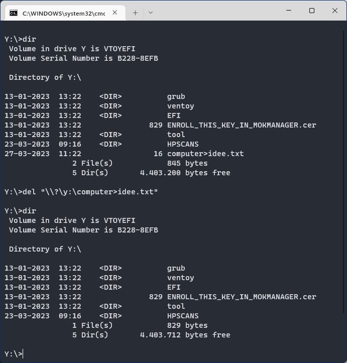 Laten we even uitgaan van de bestandsnaam computer>idee.txt. Vanuit Verkenner verwijderen lukte ons niet, maar het lukte wel met het volgende opdrachtregelcommando: