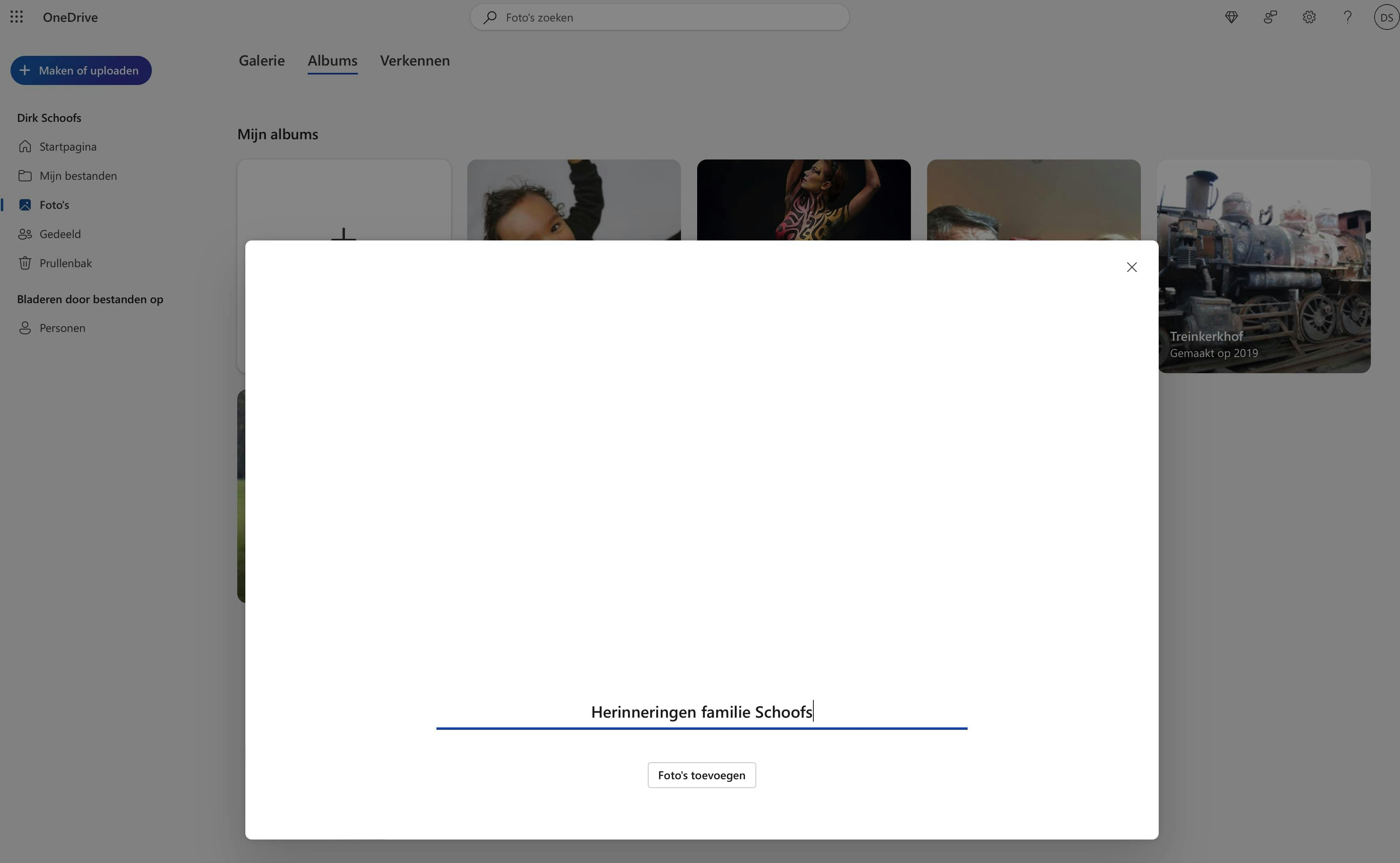 Open de web-app OneDrive en kies in de linkerkolom Foto's. Dan zie je drie tabbladen: Galerie, Albums, Verkennen. Selecteer Albums. Je ziet nu een grote plusknop en daaronder de optie Een nieuw album maken. Geef dit nieuwe album een naam. Daarmee is de basis gelegd voor je nieuwe digitale familiealbum.