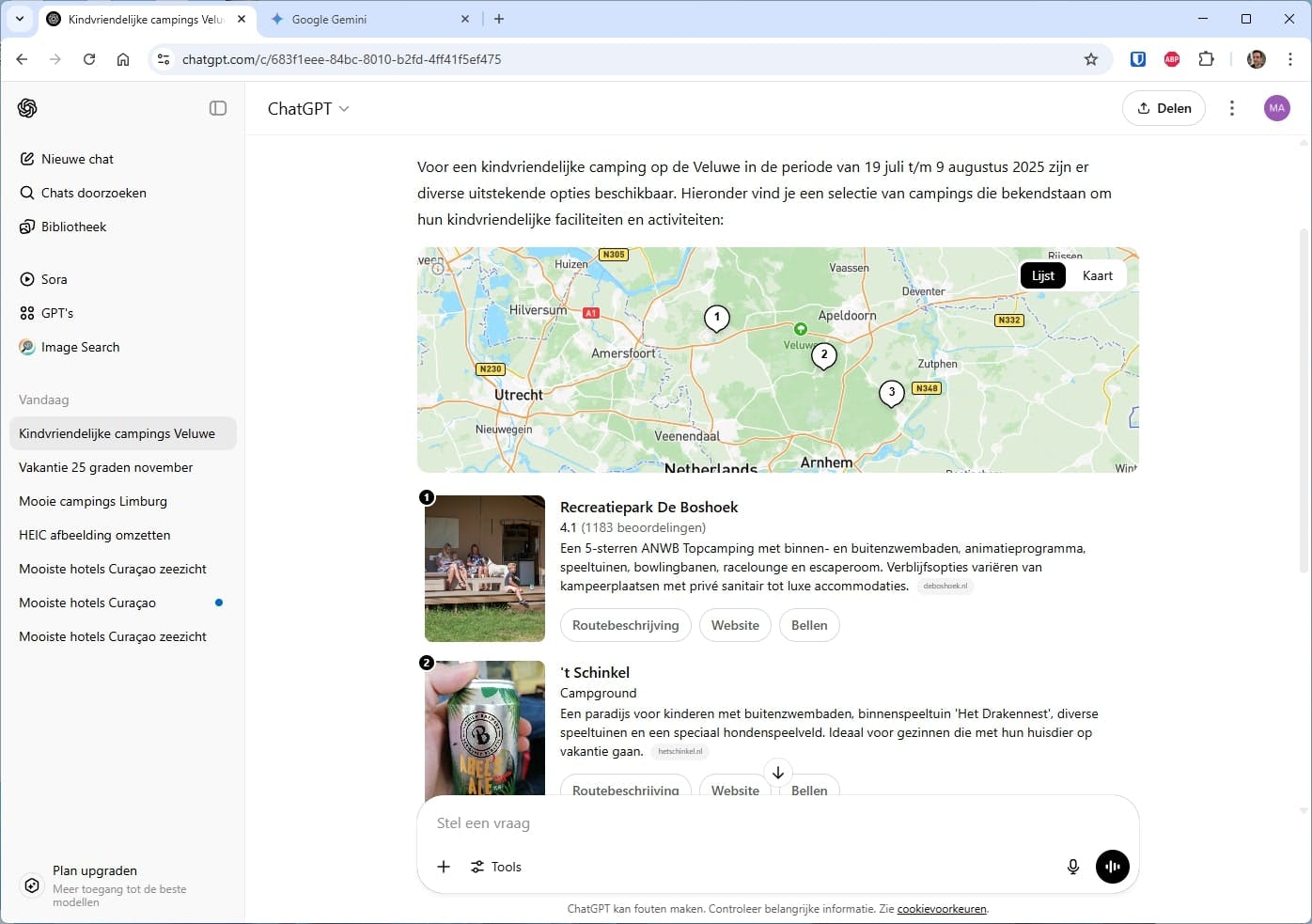Weet je nog niet precies waar naartoe je op vakantie wilt? Misschien komen Google Gemini en ChatGPT met vakantiesuggesties op de proppen waar je nooit eerder aan dacht. Deze AI-diensten zijn namelijk erg goed in het maken van lijstjes. Zoek maar eens op Noem vijf vakantiebestemmingen met mountainbikeroutes in de Benelux of Welke Europese zonbestemmingen buiten het hoogseizoen zijn goedkoop?