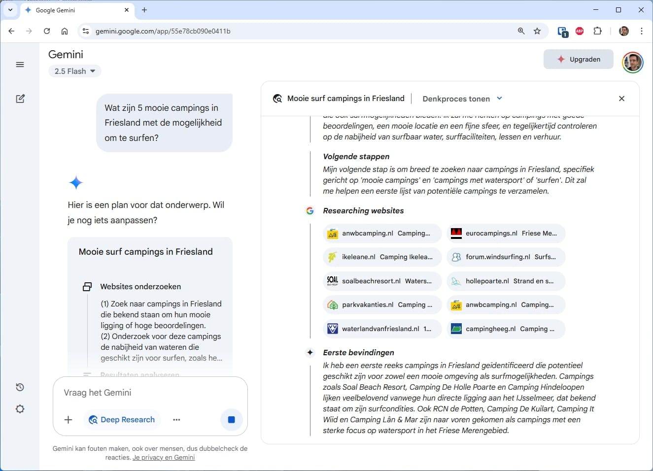 De diensten nemen nu langer de tijd om informatie te verwerken. Je ziet hierbij ook welke online bronnen er zijn gebruikt. Houd overigens wel rekening met een verwerkingstijd van minimaal enkele minuten, maar mogelijk zelfs nog langer. Voor volledige (onbeperkte) toegang tot de grondige zoekfuncties heb je een betaald abonnement nodig. Dat kost voor Google Gemini en ChatGPT respectievelijk 16, 20 en 23 euro per maand.