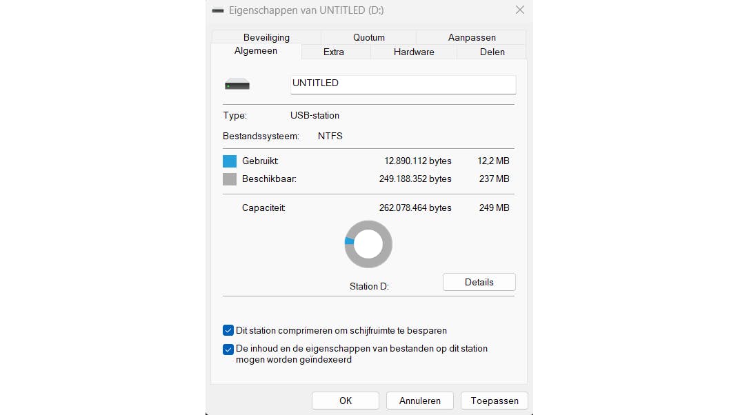 Dankzij compressie is het mogelijk om meer data op te slaan op dezelfde ruimte. In Windows 11 kun je NTFS (New Technology File System) aanspreken. Het nadeel van deze methode is dat het extra rekenkracht vraagt iedere keer dat je zo'n gecomprimeerd bestand opent. Hetzelfde gebeurt wanneer je na de bewerking het bestand sluit en er recompressie wordt toegepast. Gebruik deze methode dus voor data die je lange tijd niet gebruikt en waar extra laadtijd nauwelijks hinderlijk is.