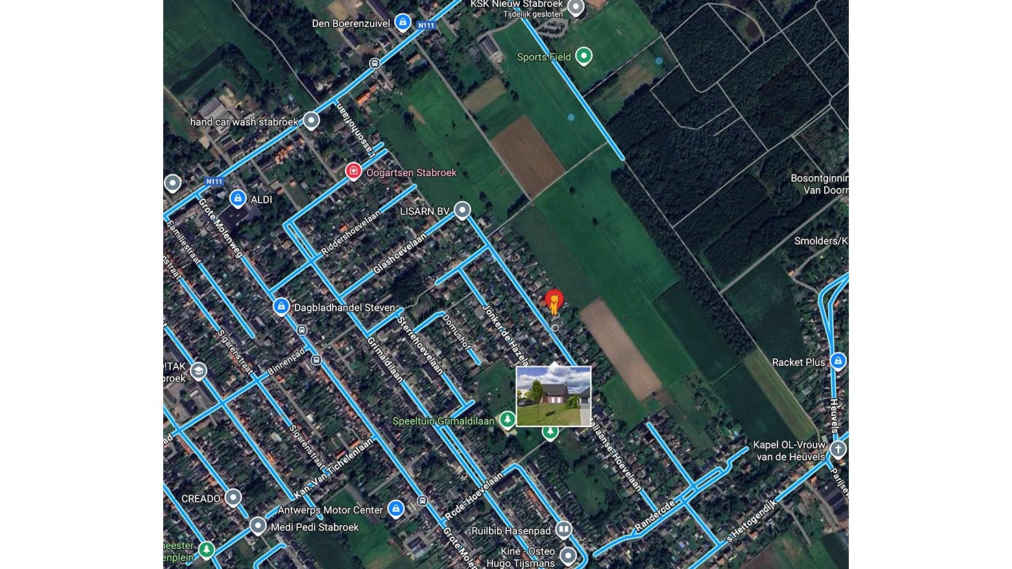 Google Maps biedt een functie waarmee je specifieke beelden – zoals nummerplaten, objecten of zelfs hele huizen – kunt laten blurren om privacyredenen. Je moet hiervoor een aanvraag indienen en zodra Google die goedkeurt, is de vervaging definitief en zelfs niet meer terug te draaien. Open Google Maps bij voorkeur op je computer, want op mobiele apparaten is deze optie voorlopig nog niet beschikbaar. Zoek vervolgens je adres via de zoekbalk bovenaan en druk op Enter om de woning vanuit de lucht in beeld te brengen. Klik op het Pegman-pictogram, het gele poppetje rechtsonder in het scherm. Sleep het poppetje naar de straat waar je huis staat. De straten die langs deze weg beschikbaar zijn in Street View, lichten blauw op.