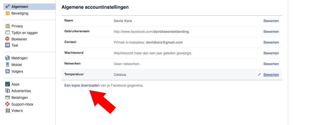 Een handige functie als je zelf op zoek bent naar een oude foto of gewoon benieuwd bent wat je allemaal ooit geplaatst hebt. Om dit te doen ga je op de website van Facebook naar Instellingen en klik je vervolgens op Een kopie downloaden van je Facebook-gegevens. Lees ook: Dit mag wel, dit mag niet op Facebook.
