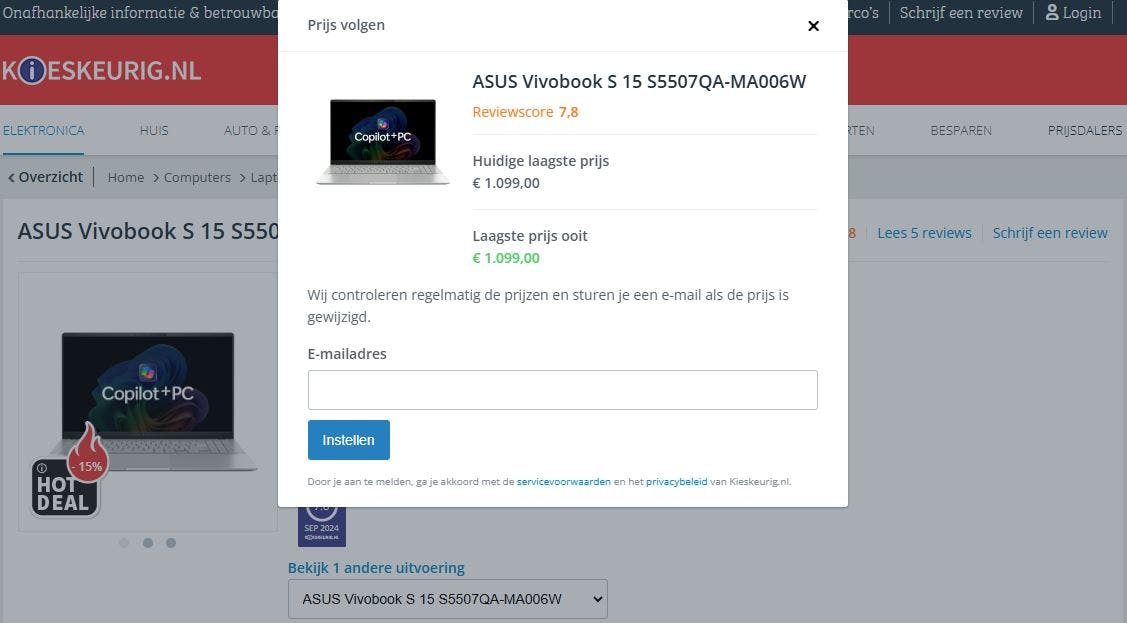 Veel vergelijkingssites, zoals Kieskeurig.nl en Tweakers, bieden de mogelijkheid om prijsdalingsmeldingen in te stellen. Dit kan je veel tijd schelen en helpt je om op de hoogte te blijven van prijsontwikkelingen. Je vult simpelweg je e-mailadres in en je ontvangt een bericht wanneer de prijs daalt.