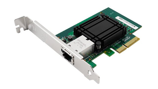 De overstap naar een 10Gbit-netwerk begint bij de netwerkadapters in je werkstations en vergelijkbare adapters in het systeem waar je data opgeslagen staat, oftewel je server of nas. De kans bestaat dat je reeds een 10Gbit-aansluiting op je werkstation hebt als je in de laatste twee jaar een high-end computer hebt gekocht. Althans, als je systeem een prijzig moederbord bevat, want de door elke moederbordfabrikant gebruikte Aquantia AQC107-chip kost tussen de 50 en 70 dollar.