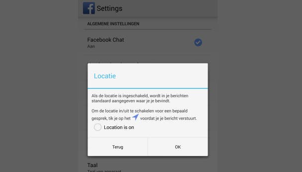 Heb je er ooit eens bij stilgestaan dat je je volledige interieur tentoonstelt als je een selfie uit de woonkamer publiceert? Probeer ook doordacht om te gaan met de Like-knop. In ruil voor die ene klik op een Facebook-pagina krijgen bedrijven namelijk persoonlijke data. En persoonlijke gegevens zoals je telefoonnummer of e-mailadres kun je maar beter niet te grabbel gooien. Hetzelfde geldt voor geotags in Facebook. Als je niet wil dat iedereen weet waar je precies bent, zet je deze functie simpelweg uit. Beweeg je muiscursor over de plaatsnaam en klik vervolgens op het kruisje. Op je mobiel kun je eventueel de locatievoorzieningen voor Facebook volledig uitschakelen. Op een iPhone doe je dat via Instellingen / Privacy / Locatievoorzieningen / Facebook. Heb je een telefoon die op Android draait? Dan ga je in de Facebook-app naar Appinstellingen / Messenger-locatieservices en vink je Location is on uit. Bevestig met OK.