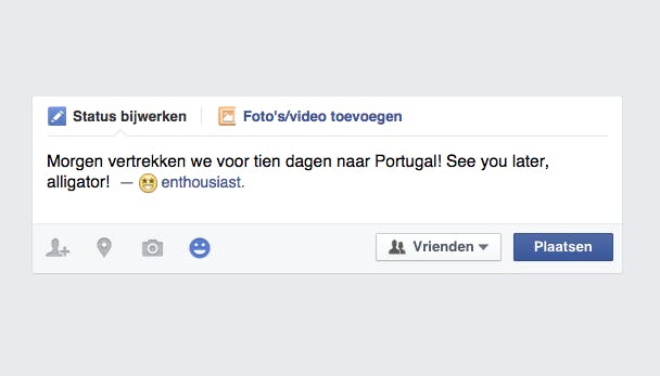 Klagen over je werk of roddelen over collega's doe je daarom beter in de kroeg dan op Facebook. Ondanks heel wat waarschuwingen van de politie, blijven nog regelmatig mensen online posten dat ze hun koffers aan het pakken zijn om tien dagen op vakantie te gaan. Met zo'n bericht op Facebook - of nog erger op Twitter - geef je inbrekers de boodschap: kom gerust kijken, ik ben er niet! Weet dat alles wat je op een sociale netwerksite publiceert, permanent is. Ook als je een bericht verwijdert of je volledige account opzegt, kunnen er sporen online blijven staan.
