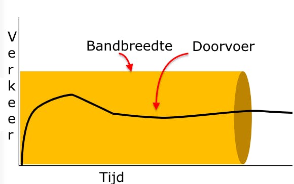 De doorvoersnelheid van een netwerk is niet hetzelfde als de bandbreedte. Deze laatste term verwijst naar de totale capaciteit waarover een systeem kan beschikken om data over een kanaal of medium te versturen. Het gaat dus om een theoretische, maximaal haalbare snelheid. In een netwerk is er echter allerlei overhead, te wijten aan onder meer controlemechanismen van netwerkprotocollen of foutief geconfigureerde hardware, wat tot een lagere doorvoersnelheid kan leiden. De doorvoersnelheid (throughput) laat zich daarom definiëren als de hoeveelheid data tussen twee punten in een gegeven tijdsspanne. Deze snelheid drukken we gewoonlijk uit in kilobit per seconde (kbit/s).