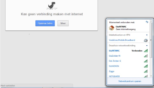 Tip 01 Windows laat duidelijk zien: er is verbonden via wifi, maar de toegang tot internet is stuk.