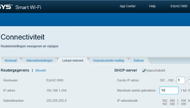 Komt de DHCP-server adressen tekort, dan kunnen nieuwe apparaten niet het netwerk op. De oplossing is inloggen op de router, die vaak ook de DHCP-server is. Daar vergroot je de reeks IP-adressen die de DHCP-server mag gebruiken. Open een webbrowser en typ in de adresbalk het IP-adres van de router. Bevestig met Enter en wacht tot je kunt inloggen. Log in en zoek dan naar DHCP. Kijk bij een term als 'Maximum aantal gebruikers' en zet dat aantal hoger. De waarde moet minimaal het aantal apparaten in het thuisnetwerk zijn met nog enige ruimte voor nieuwkomers.