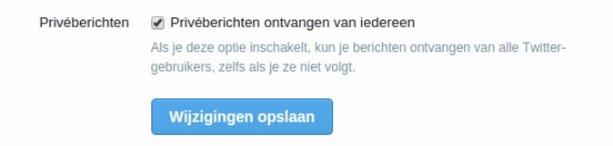 Privéberichten bestaan al sinds de eerste dagen van Twitter, maar tot niet al te lang geleden kon je alleen privéberichten sturen naar mensen die jou volgden. Tegenwoordig biedt Twitter de mogelijkheid privéberichten te ontvangen van iedereen. Dat heeft zowel voor- als nadelen. Het grote voordeel is dat je simpel gevoelige informatie (zoals adresgegevens en telefoonnummers) kunt delen, bijvoorbeeld als je in gesprek bent met de helpdesk van je internetprovider. Aan de andere kant is het voor iedereen mogelijk je berichten te sturen, die vaak van nogal spam-achtige aard zijn. Let dus goed op wie je een bericht stuurt en klik niet op de link als je het niet vertrouwt. Je kunt altijd accounts blokkeren oom ervoor te zorgen dat ze helemaal geen contact meer met je op kunnen nemen.