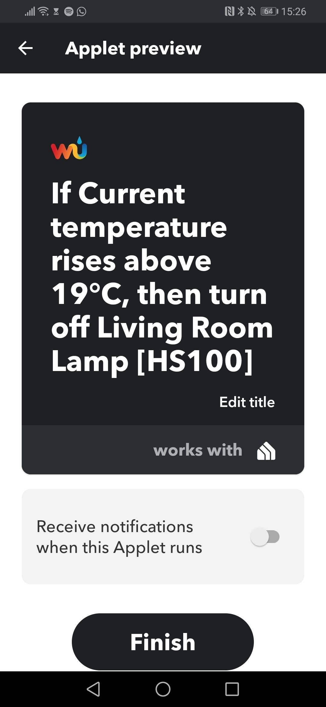 Elke slimme thermostaat heeft een schemafunctie, maar zo’n vast schema is niet altijd de beste keuze. Wat als het vandaag warmer is dan verwacht? Je kunt de thermostaat lager zetten via de app, maar dit kan ook automatisch. Kies bij de ‘if’ in IFTTT ‘Weather Underground’ en geef aan bij welke buitentemperatuur je thermostaat lager of helemaal uit moet. Stel bij ‘that’ de locatie van je thermostaat in (waarschijnlijk je huis) en koppel je slimme thermostaat aan IFTTT.