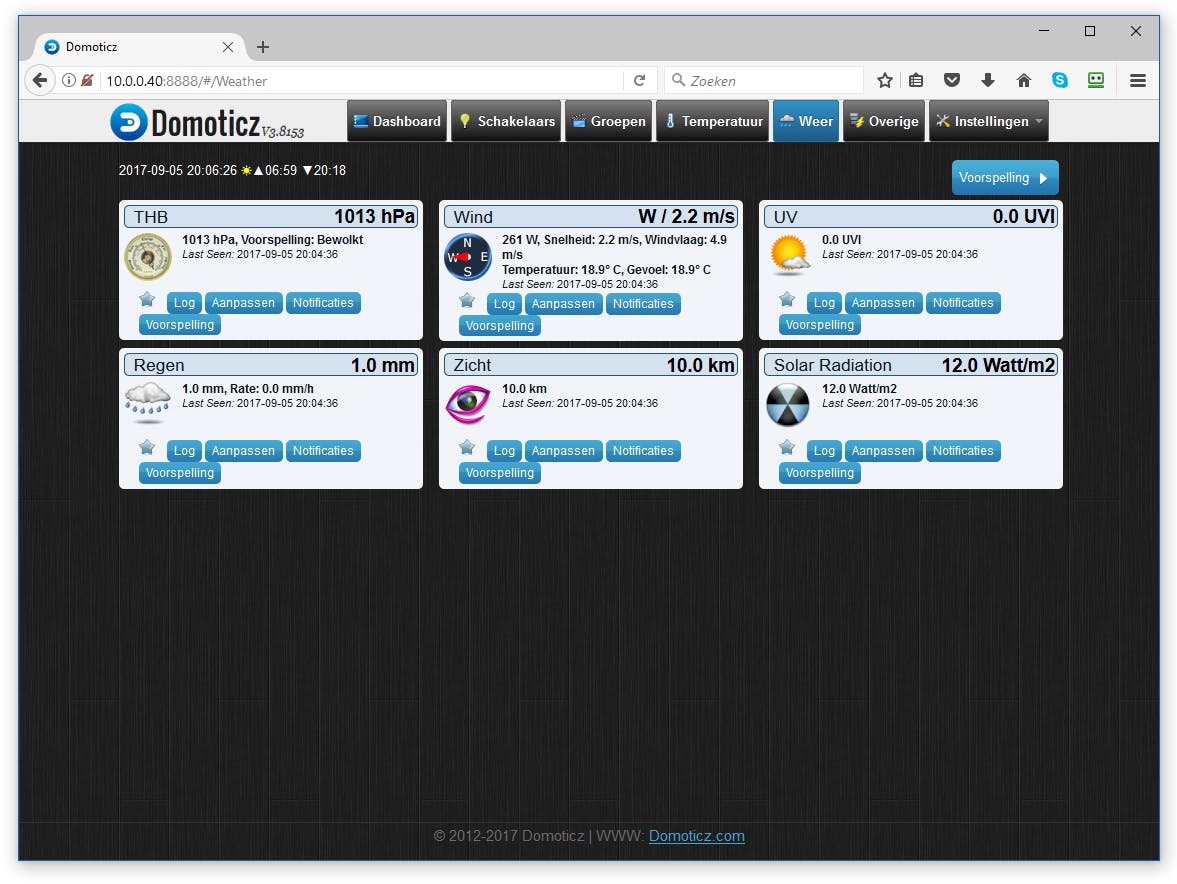 Dankzij de gratis api van Weather Underground kun je weerdata van ieder weerstation in jouw domotica-systeem opnemen, bijvoorbeeld Domoticz. Maak daarvoor eerst een api-key (sleutel) aan via de gratis opties Stratus Plan en Developer. In Domoticz ga je dan naar Instellingen / Hardware. Kies bij Type voor Weather Underground en voer je api-sleutel in. Bij Locatie voer je de Station ID van het gewenste weersstation in. Voor persoonlijke weerstations moet je hier pws: voor zetten, bijvoorbeeld pws:IUTRECHT60. De meer geavanceerde weerstations zijn nauwkeuriger en rapporteren ook veel meer details, zoals luchtdruk, windsnelheid, zonkracht, zicht en neerslaghoeveelheid.