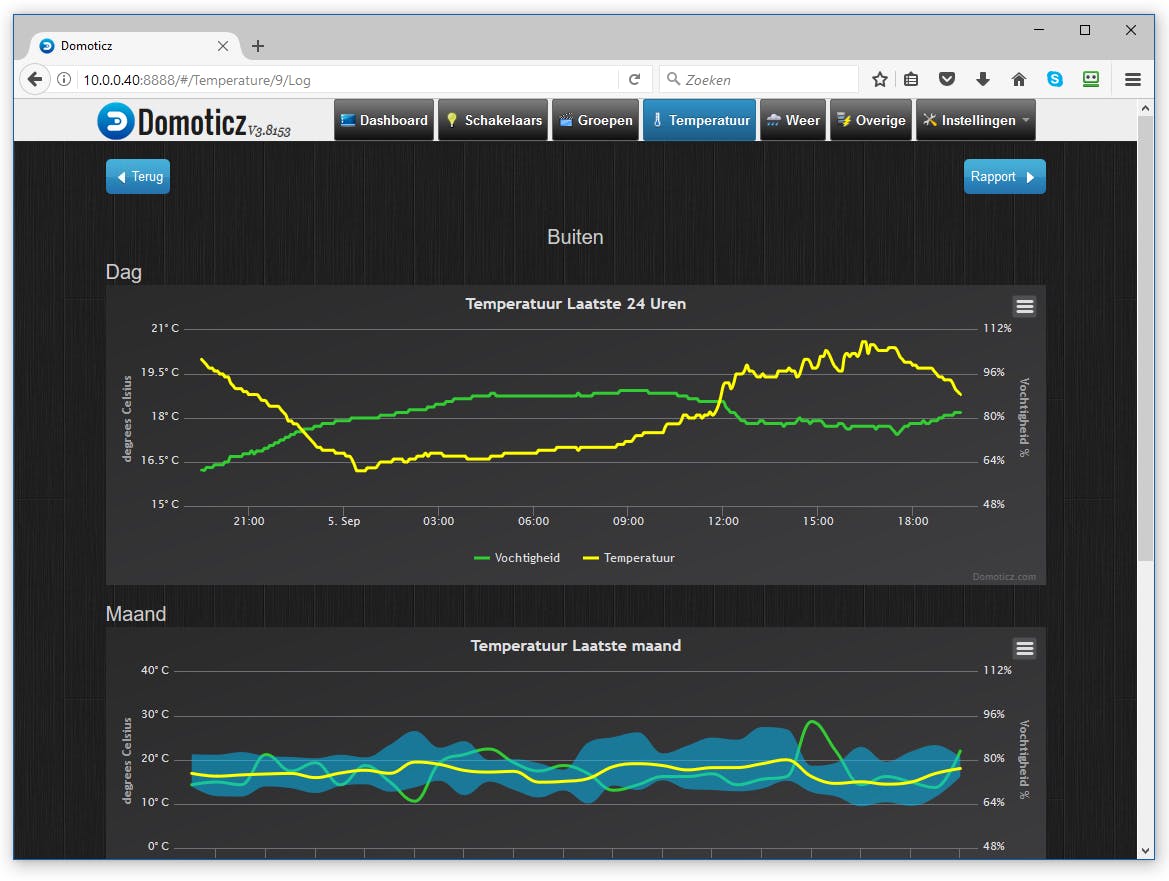Wil je in iedere kamer in huis de temperatuur meten, dan kunnen de temperatuursensoren een aardige kostenpost vormen. Gelukkig vind je in Chinese webshops volop sensoren voor minder dan tien euro die ook goed werken. De meeste geven zowel temperatuur als luchtvochtigheid door en zijn te gebruiken met bijvoorbeeld de transceiver van Rfxcom (zie tip 1). Zit er een (kleine) afwijking in de gemeten waarde, dan kun je dat door Domoticz laten bijstellen. Die laat trouwens ook meteen alle gemeten waardes in grafieken zien.