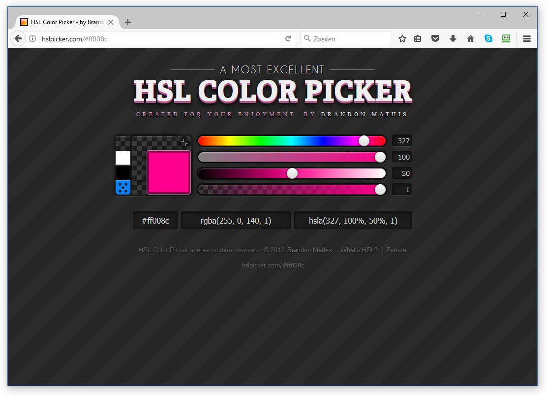 Heb je een Hue-lamp met kleur dan zou je die als statuslamp kunnen gebruiken. Reageert je nas bijvoorbeeld niet meer? Dan maak je dat met een rode lamp snel duidelijk. Om de kleur aan te passen moet je in je commando een bepaalde hue-waarde opgeven. Op verschillende websites (bijvoorbeeld http://hslpicker.com) kun je een zogenaamde hsl-kleurcode berekenen. De hue-waarde (h) vermenigvuldig je vervolgens met 182. Voor donkerroze (h=327) geef je in je commando zodoende een hue-waarde van 59514 op.