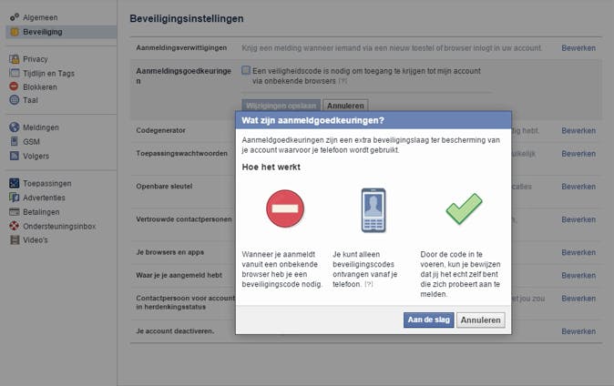 Tip 02 Tweestaps-authenticatie heb je ook in Facebook zó opgezet.