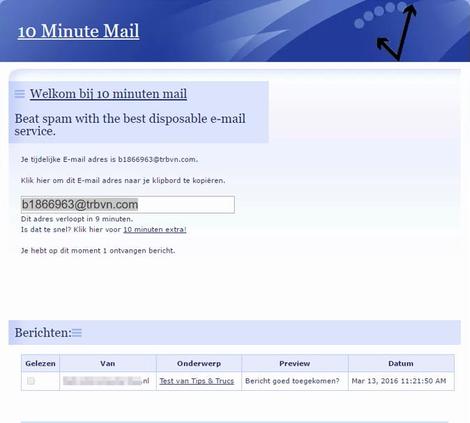 Een compleet verzonnen adres is meestal geen optie, omdat je meestal je inschrijving moet bevestigen via een link in de e-mail. Er is echter een 'tussenweg': een wegwerpadres. Nu kun je voor dit soort zaken weliswaar een extra webmailadres bij diensten als Gmail of Outlook.com creëren, maar nog makkelijker is het gebruiken van een specifieke service als Mailinator of 10minutemail. Bij de eerste kun je zelf een e-mailadres verzinnen (iets als @mailinator.com), bij de tweede wordt automatisch een willekeurig adres gegenereerd dat standaard tien minuten geldig blijft. Vervolgens kun je op de site zelf nagaan of er op het betreffende adres e-mail is binnengekomen. Niemand, dus ook niet de beheerders van deze maildiensten, kent jouw echte e-mailadres. Soms bots je wel op het probleem dat bepaalde services domeinen van dergelijke wegwerpadressen weigeren.