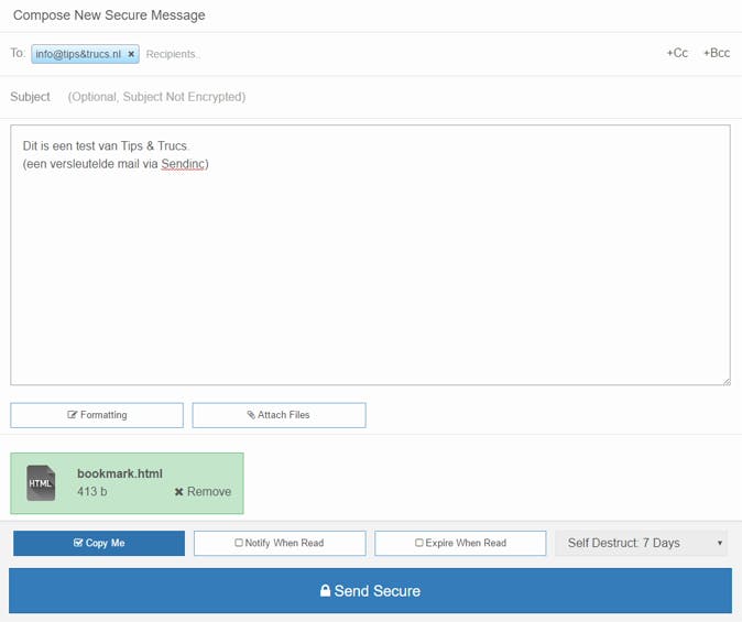 Tip 13 Voor het sporadisch versleutelen van e-mail is Sendinc een comfortabele oplossing.