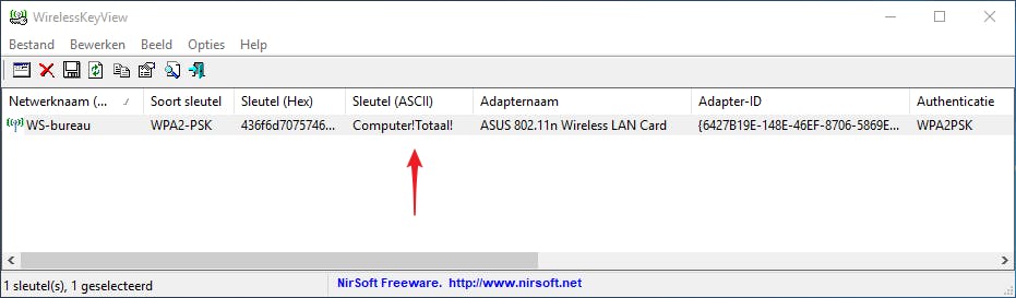 Het kan iedereen overkomen: je wilt een apparaat aan je draadloze netwerk koppelen, maar je bent het wachtwoord vergeten. Nu kun je dat achterhalen via de webinterface van je router, maar net zo makkelijk gaat dat met het portable WirelessKeyView, uit te voeren op een Windows-pc die zich eerder bij dat netwerk heeft aangemeld. De tool haalt de mosterd namelijk uit de WLAN AutoConfig-service van Windows. Houd er rekening mee dat je antivirustool wellicht aan de alarmbel trekt zodra je deze tool uitvoert.