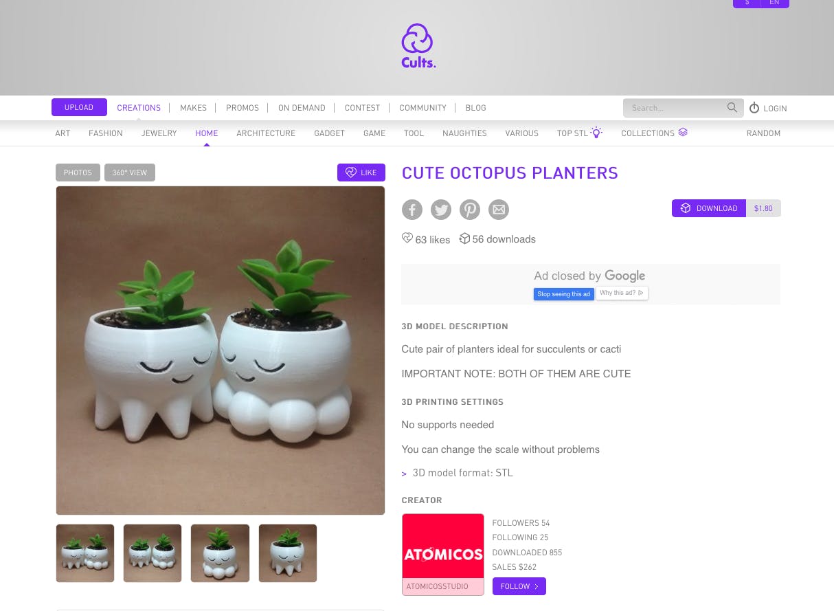 Wil je zeker zijn van een geslaagde printopdracht, dan kun je websites raadplegen die speciaal bedoeld zijn voor objecten die met een 3D-printer kunnen worden geprint. Een bekende site is Cults, waar je de meest uiteenlopende modellen vindt. Klik bijvoorbeeld op Home en je kunt modellen downloaden voor lampen, bloempotten en wat niet al meer. De modellen worden gewaardeerd door gebruikers van de site, waardoor je al snel ziet of een 3D-ontwerp deugt of niet. Sommige modellen zijn gratis te downloaden, voor andere bestanden betaal je een paar euro.