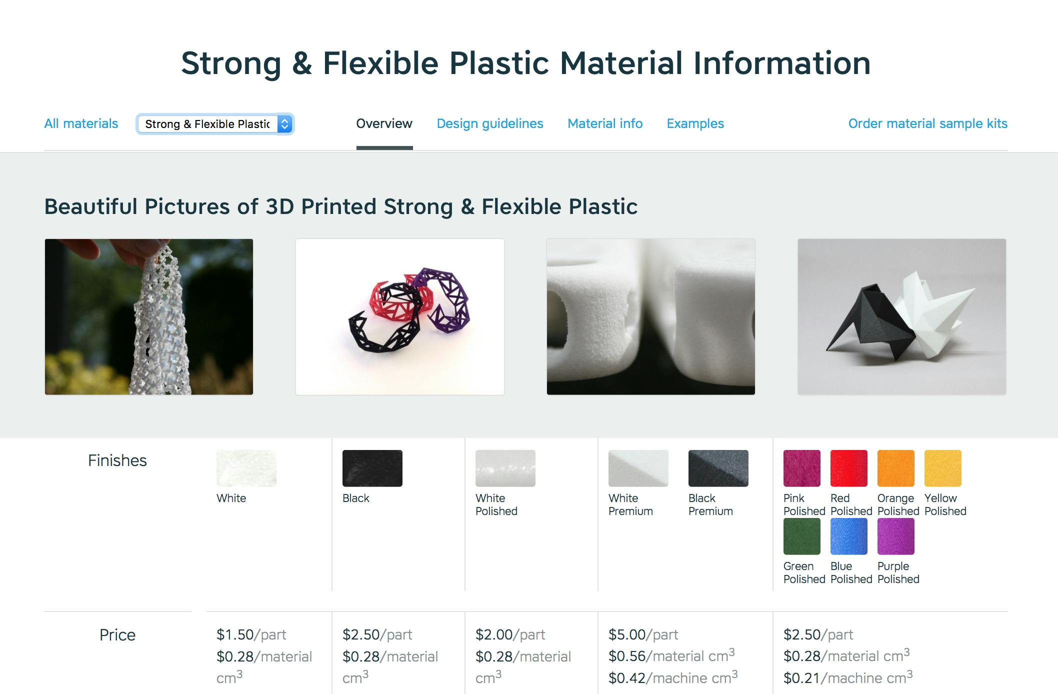 Welk materiaal kies je nu voor je te printen 3D-object? De meest voor de hand liggende optie is nylon. Dat is bij de meeste aanbieders het goedkoopst en is het makkelijkst te printen. Andere namen voor nylon zijn bijvoorbeeld strong & flexible plastic, polyamide of white plastic. Dat komt doordat je model eerst wordt geprint met wit nylonpoeder, waarna het wordt gekleurd in de kleur die je wilt hebben.