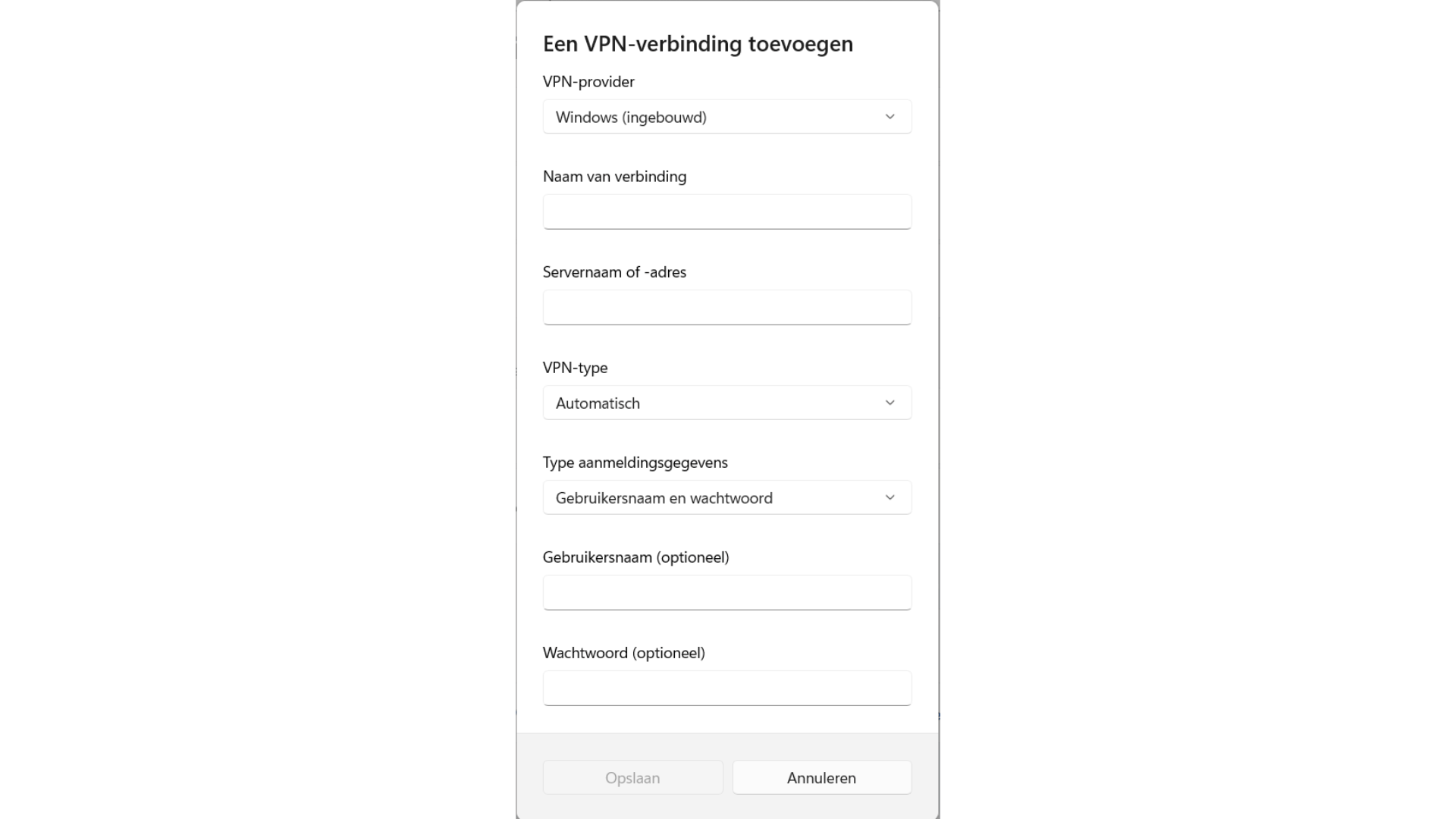 In de praktijk maak je verbinding door in Windows via Instellingen naar Netwerk & internet en VPN te gaan, vervolgens VPN toevoegen te kiezen, de servernaam, het protocol en je aanmeldgegevens in te vullen en op Opslaan en daarna Verbinden te klikken.