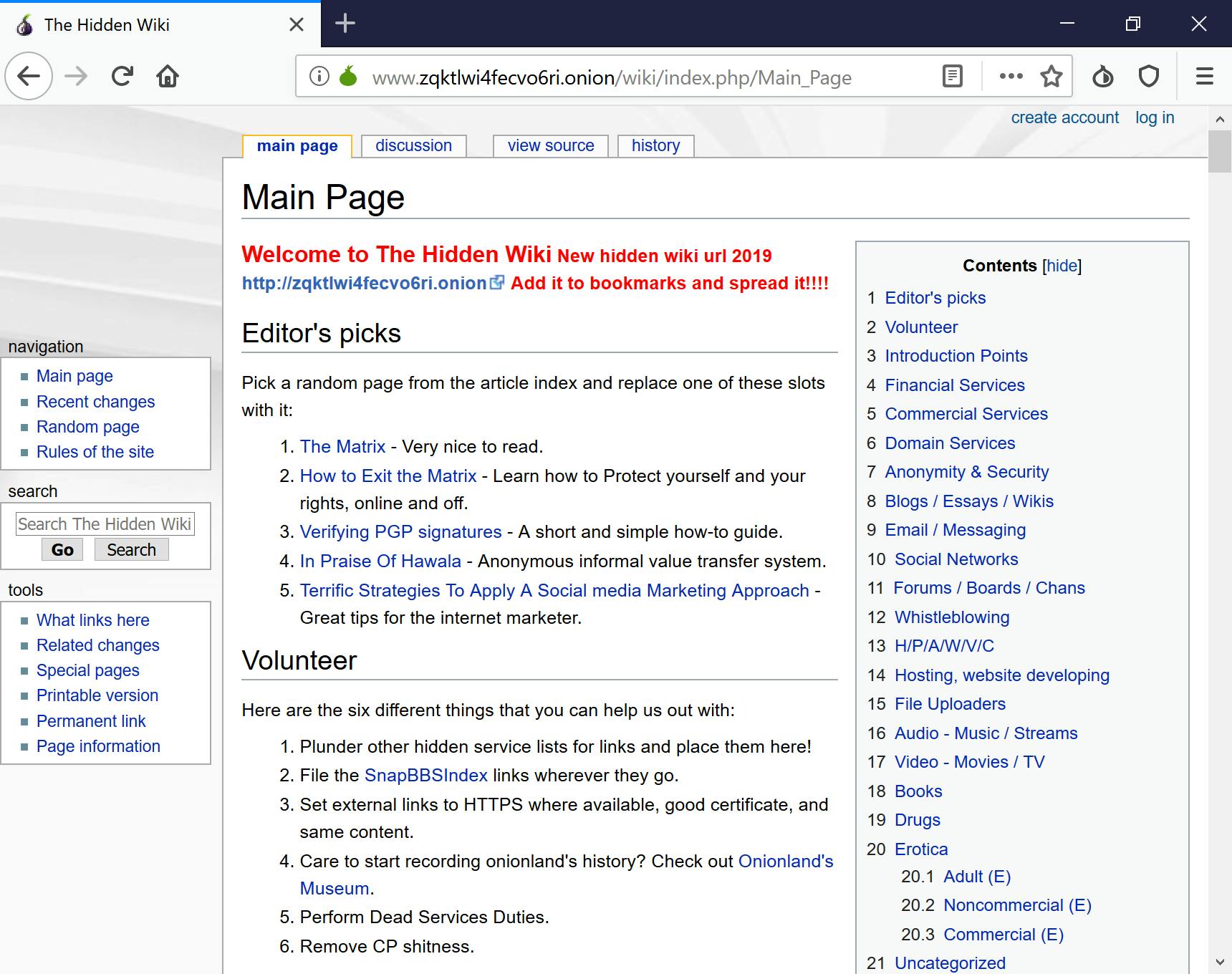 Maar hoe vind je die onion services? Er bestaan diverse websites die links naar onion services verzamelen, zoals The Hidden Wiki (www.zqktlwi4fecvo6ri.onion). Ook de zoekmachine DuckDuckGo (http://3g2upl4pq6kufc4m.onion) draait een onion service. En zelfs Facebook (http://facebookcorewwwi.onion), waardoor mensen in landen waar het sociale netwerk geblokkeerd is nog altijd met hun familie en vrienden kunnen communiceren. Maar let op: er staan ook heel wat schimmige onion services online die bezoekers alleen maar proberen te misleiden. Bij sommige mensen haalt anonimiteit immers het slechtste naar boven …