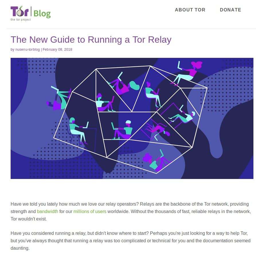 Het Tor-netwerk werkt alleen als er voldoende mensen Tor-relais draaien. Door een relais in het midden van de Tor-keten te draaien, loop je geen risico. Maar als je een exit-node draait, komt jouw ip-adres in de logs van servers te staan die door anderen via je exit-node bezocht worden.