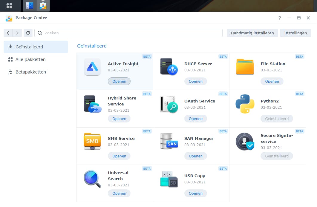 Heb je een NAS-applicatie gevonden die je wilt hebben, open dan het Package Center / Alle pakketten en vul de app-naam in het zoekveld in. Let wel, bij DSM 7.0 bèta moet je in de rubriek Betapakketten zijn. Zodra het pakket is gevonden, druk je op Installeren (of desnoods op Deelnemen aan bèta). Na afloop van de installatie kun je dan op Openen klikken. Afhankelijk van het geïnstalleerde pakket kun of moet je dit nog verder configureren voor het helemaal bruikbaar is.