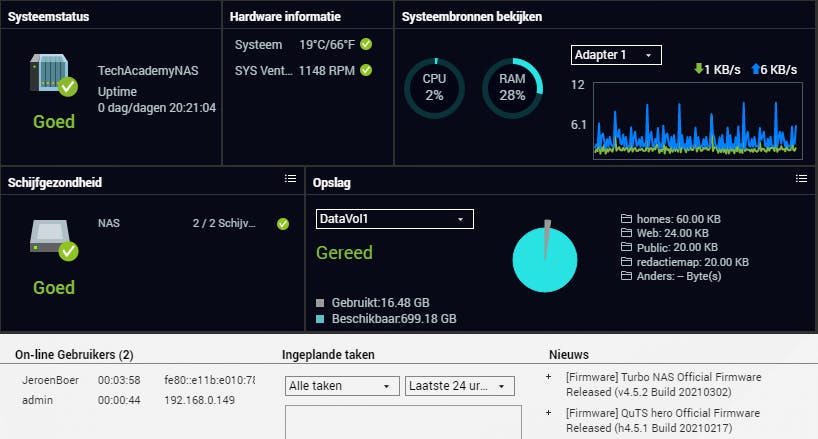 Daarnaast gaan we in dit artikel aan de slag met QNAP, waarbij we voor dit artikel QTS 4.5.2 gebruikt hebben.