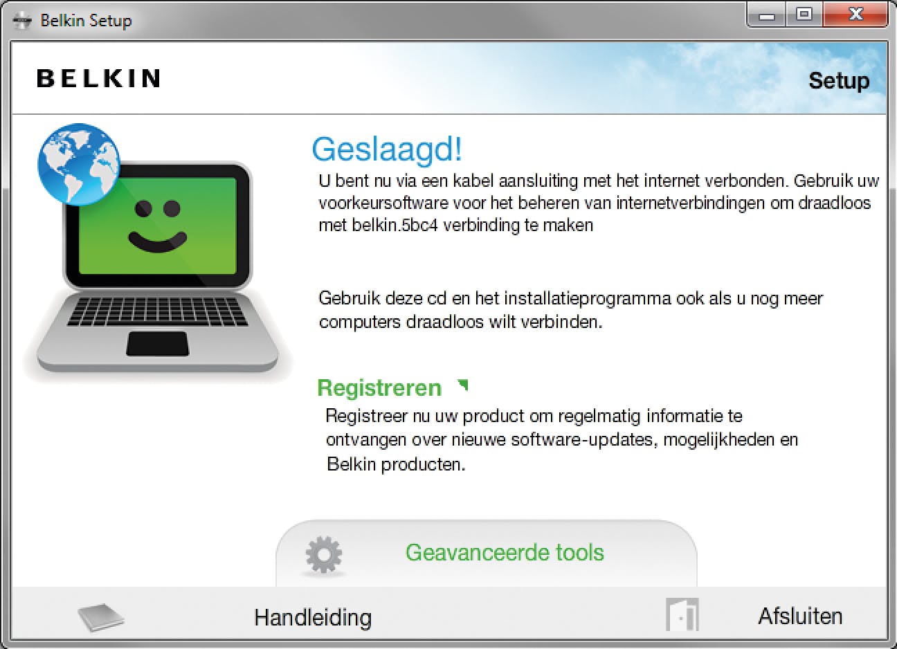 Sommige fabrikanten vereisen een aparte software-installatie alvorens u de usb-aansluiting kan gebruiken. De software wordt meegeleverd op een cd, maar waarschijnlijk krijgt u meteen een update onder uw neus voor een nieuwe versie. Voltooi die zeker, want updates bij routers voegen dikwijls extra functionaliteit toe. Volg de b-stappen in deze workshop voor de aparte installatie.