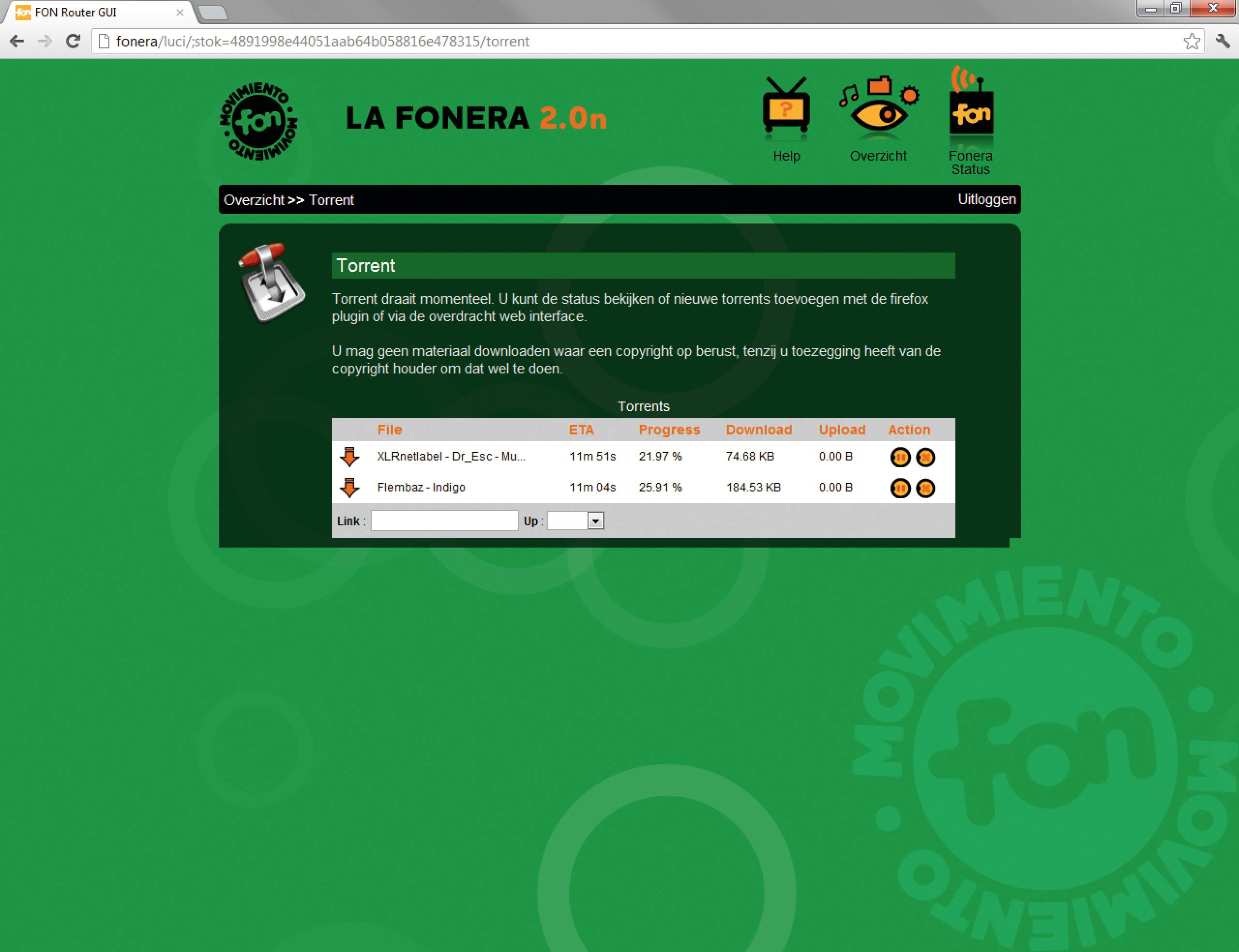 Klik in de webinterface op Torrent en kies de plaats waar u een torrent-bestand hebt gedownload. Sommige routers vragen simpelweg om de url van het bestand, waarna ze het zelf downloaden. Daarna is duidelijk te zien hoever de download gevorderd is, en in tussentijd kunt u de computer uitschakelen. Hetzelfde geldt voor Download beheer. Hier hoeft u enkel de url van het downloadbestand kopiëren en de router begint automatisch met downloaden.