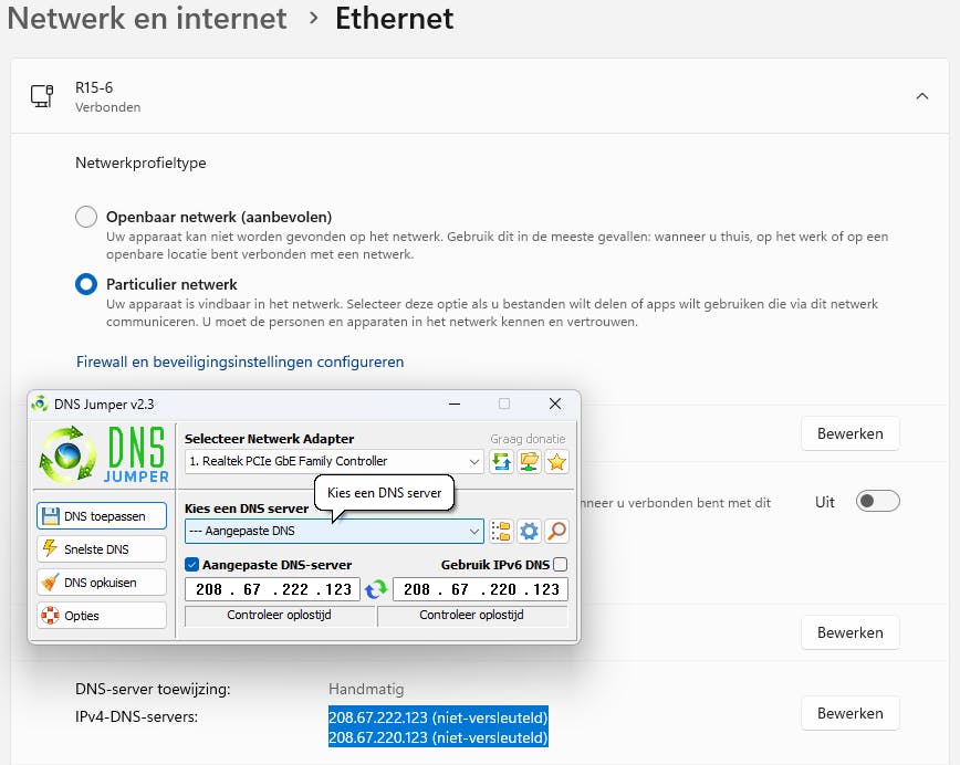 Je kunt de DNS-instellingen op een Windows-pc ook aanpassen via de tool DNS Jumper.