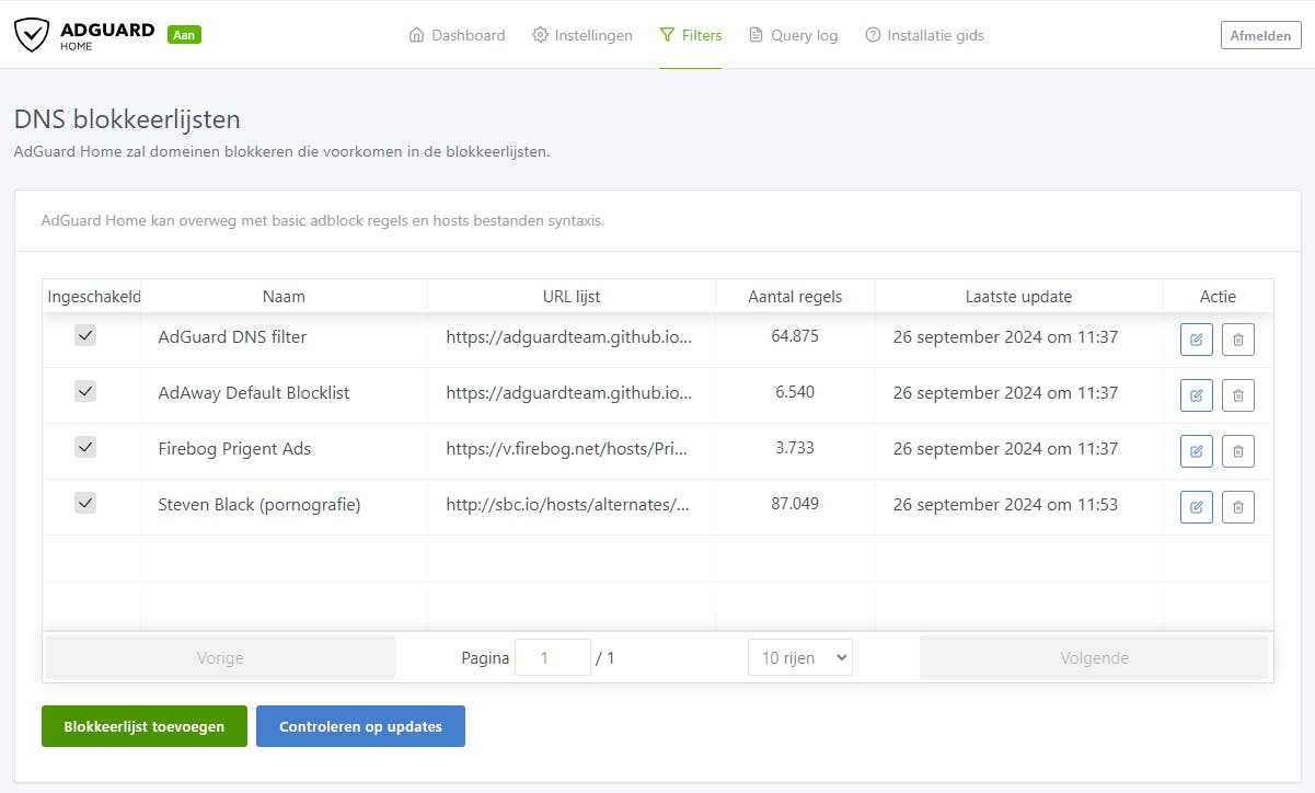 In de rubriek Query log vind je een chronologische lijst van alle DNS-aanvragen, met details over welke apparaten wat en wanneer hebben aangevraagd.