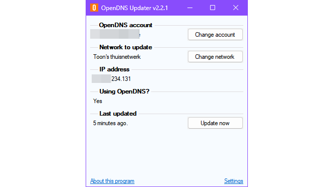 Een speciaal tooltje zorgt ervoor dat de koppeling tussen jouw externe ip-adres van je netwerk en OpenDNS intact blijft, ook als het wijzigt.