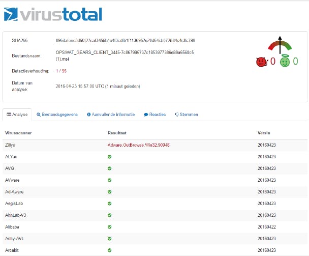 Wil je op een veilige manier uittesten of je antivirustool wel paraat staat, dan kun je een nepvirus downloaden. Het bekendste is het EICAR-testvirus dat je (in diverse vormen) kunt downloaden. Ook goed om weten (en om mee te delen aan de gebruikers van je netwerk): wanneer je een bestand wilt downloaden, laat het dan ook eerst controleren door de online antivirusdienst VirusTotal (tot 64 MB) of door Metadefender Cloud (tot 140 MB). Beide diensten testen het geüploade bestand (of de een ingevoerde URL) met enkele tientallen verschillende virusscanners. Het resultaat heb je pijlsnel binnen.