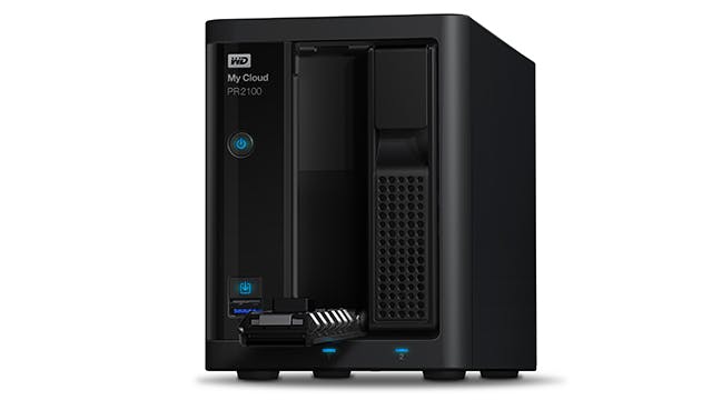 De WD My Cloud Pro PR2100 is zowel leeg als gevuld met WD Red nas-harde schijven verkrijgbaar met brutocapaciteiten van 4 TB (639,99 euro) tot 28 TB (1186,99 euro). Wij testten het op één na duurste 20TB-model (994 euro). Geconfigureerd in RAID1 heeft deze netwerkschijf in de praktijk 9,92 TB werkelijke vrije ruimte.